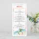Ce modèle de menu mariage d'inspiration mexicaine saisit l'essence d'une fête tropicale avec son design époustouflant. Sur le devant, une scène de plage couleur aquarelle sereine avec des palmiers balancés, bordée de motifs traditionnels mexicains colorés en tuiles, crée une atmosphère festive et accueillante. L'arrière présente une charmante aquarelle d'une porte mexicaine rustique entourée de cactus et de fleurs luxuriants, ajoutant une touche authentique et artistique à votre événement. Parfait pour tout mariage de destination, ce modèle propose un texte personnalisable qui s'adapte à votre menu et à votre style.