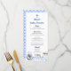 Une collection de coquillages dessinés à la main entourent le bord de ce menu. Une croix bleue orne le dessus. L'arrière dispose d'un motif de mer pour compléter le thème. Commander ou magasin soeur www.pixieprints.com pour tous vos besoins d'invitation!