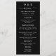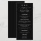 Ces cartes noires de menu mariage moderne et design affichent un design noir et blanc épuré qui met en valeur l'élégance minimaliste. Ajoutez les initiales du couple en haut et customisez pleinement tout le texte dans le champ d'édition pour le rendre unique. Parfait pour votre mariage ou dîner de répétition.