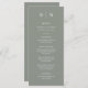 Ces cartes de menu mariage moderne et élégantes ou cartes de menu pour le dîner de répétition présentent un design simple vert et blanc, qui dégage un style minimaliste. Ajoutez vos initiales ou votre monogramme pour les rendre complètement vôtres.