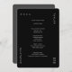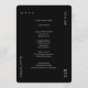 Cette carte de menu minimaliste noire aux formes arrondies présente votre menu du dîner ou un menu mariage dans une typographie moderne sur un arrière - plan noir solide. Parfait pour un mariage moderne ou tout autre événement élégant et simple-chic. Toutes les couleurs de cette carte de menu mariage - arrière - plan et texte - peuvent être modifiées dans l'outil de conception.