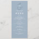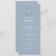 Simple, contemporain, menu minimaliste mariage bleu poussiéreux avec calligraphie moderne et élégante esperluette tendance.