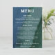 Éléments : fond abstrait à l'aquarelle. Les noms et les détails apparaissent dans des polices sans empattement modernes. Le dos comporte une photo et un code QR RSVP. Couleurs : bleu, vert, émeraude, océan, vert de mer, marine, bleu royal, azur. Thèmes : moderne, minimaliste, contemporain, tons de joaillerie. Collection : Collection de mariage photo minimaliste moderne bleu turquoise. Type de produit : Menu