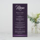 Une élégante faire-part de mariage moderne violet foncé avec du texte blanc et deux ornements rayés rose/lavande au fond du menu créant un design élégant mais simple.