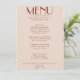 A colorful retro funky modern bright wedding dinner menu. Which features chic template design of boho vintage creamy background and deep red typography and hand written menu. Perfect and matching with the whole suite.