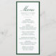 Featuring graceful dark green script at the top, this wedding menu combines traditional calligraphy with crisp serif lettering for the couple’s names and menu details. The deep green frame brings a sense of richness and understated luxury, perfect for estate, garden, and classic weddings. With its balanced composition and strong border, this menu card offers a polished presentation for showcasing your reception courses in a cohesive and elevated way.
