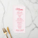 Menu Modern Minimal Minimalist Pink Stripes Red Wedding