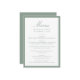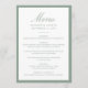 This wedding menu features “Menu” in soft sage green calligraphy, complemented by clean serif typography for the couple’s names, date, and reception courses. The muted green border brings a calm, natural touch while maintaining a structured and timeless look. Ideal for garden, vineyard, and outdoor weddings, this menu blends freshness with classic design.