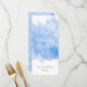 Carte de menu abstraite d'aquarelle moderne bleu d'hiver de mariage avec une peinture d'aquarelle peinte à la main avec une texture dans les tons de bleu, arbres en blanc avec la neige, flocons de neige et texte en blanc et gris. Cet élégant design décontracté mariage est un modèle entièrement personnalisable, parfait pour votre mariage d'hiver. Notez qu'il ne s'agit que d'une image d'aquarelle et non d'une texture réelle. Pour de meilleurs résultats, choisissez feutre ou autre type de papier avec texture.