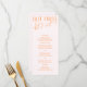 Menu moderne Blush PInk & Vibrant Orange Mariage