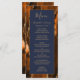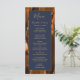 Ce menu mariage moderne et élégant est doté d'un arrière - plan d'agate orange brûlé à l'aquarelle et décoré d'une fausse parties scintillant dorée. Le texte apparaît dans une écriture manuscrite de couleur or élégante et des polices de caractères sur un rectangle bleu marine foncé. La conception de l'agate est répétée à l'envers.