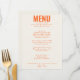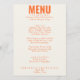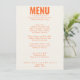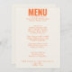 Un menu de dîner mariage moderne et coloré rétro et moderne. Ce qui présente un design modèle chic de boho vintage crémeux arrière - plan et la typographie orange et menu écrit à la main en orange. Parfait et assorti à toute la suite.