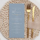 Elevez votre réception grâce à notre menu minimaliste mariage bleu poussiéreux, un mélange parfait de simplicité et d'élégance. Doté d'un coeur de corde dorée chic, ce menu exhale une sophistication moderne et un charme intemporel. Idéal pour les couples à la recherche d'une touche raffinée, ce menu ajoute une touche d'élégance à votre expérience culinaire. Découvrez la beauté de la simplicité avec cet ajout exquis à votre journée de mariage, promettant une célébration remplie d'amour et de style.