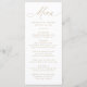 Ajoutez une touche de luxe à votre réception de mariage avec ce menu de mariage élégant, avec "Menu" en calligraphie or sophistiquée sur un arrière - plan blanc classique. Ce design moderne, simple et élégant permet aux couples de personnaliser leur menu avec leur nom, leur date de mariage et leurs détails de repas en lettres d'or gras. Parfait pour les mariages, tant officiels que décontractés, ce design intemporel s'ajoute à tout thème mariage et à toute saison, créant une expérience culinaire raffinée pour vos invités. Que vous planifiez un rassemblement intime ou une grande fête, ce menu époustouflant ajoute un élément chic et mémorable à votre journée spéciale.
