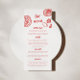 Notre menu unique à la main dessiné à la main est vraiment *bisou de chefs*. Ce design présente une typographie amusante et éclectique qui imite l'écriture manuscrite naturelle, avec des illustrations sur mesure, parfaite pour représenter votre réception et votre dîner. Cette version comprend des pops en rouge gras.