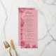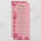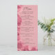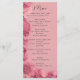 Menu mariage moderne d'inspiration barbique, avec des fleurs de papier découpé 3d rose en rose monochromatique.