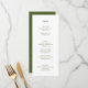 Moderne Moss Green Botanical Floral Mariage Menu avec votre menu mariage à l'avant et un dessin de ligne botanique moderne et le nom du couple et la date du mariage à l'arrière. Idéal pour une réception de mariage, un dîner mariage, un dîner de répétition ou une douche pour couple. Toutes les couleurs peuvent être changées si vous le souhaitez. Cette carte de menu mariage fait partie d'une suite de papeterie mariage avec des articles correspondants.