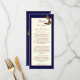 Un élégant menu de réception bleu marine avec un unique Dahlia orange brulé et une paire de papillons Monarque beatifie votre sélection de menu de 3 entrées et apéritifs. Le menu propose les mêmes papillons monarques magnifiques en vol. L'élégance automnale sur mesure à son meilleur romantique pour vos tables de réception.