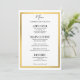 Élever votre réception avec notre menu Mariage classique, orné d'une bordure dorée intemporelle. Une touche d'élégance qui complètera votre expérience culinaire mémorable.