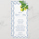 Elevez votre table avec notre menu Mariage Monograms Citrus citron & Blue Wave Border. Doté d'une branche de citron peinte à la main et d'une bordure molle bleue ondulée, ce menu magnifiquement conçu ajoute une touche fraîche et côtière à chaque endroit. Personnalisé avec les initiales du couple, les noms, la date du mariage et les détails du menu, il allie élégance et charme pour une expérience gastronomique sans faille. Parfait pour les mariages d'inspiration italienne, estivale ou de destination, ce menu s'harmonise sans effort avec le reste de votre collection d'agrumes, apportant couleurs, personnalité et sophistication à vos tables de réception.