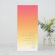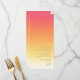 L'arrière - plan pour les pièces de cet ensemble mariage minimaliste est un dégradé de couleurs saisissant, du rose rose profond à la mandarine et du jaune au blanc. La carte de menu mariage présentée ici présente un design élégant et moderne et une police sans serif contemporaine pour ajouter à son attrait. Ajoutez facilement vos sélections de menu, vos initiales et la date du mariage à l'aide du modèle fourni. Recherchez ID741 pour voir l'ensemble complet des produits correspondants dans Hot Summer ou choisissez l'une des autres combinaisons de dégradé disponibles pour convenir à votre palette de couleurs mariage.
