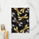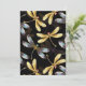 Motif sans couture avec or, bijoux, libellules brillantes avec ailes détaillées et pétillantes sur arrière - plan noir. libellule d'or.