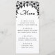 Celebrate your love with this beautiful black and white wedding menu. Designed with an elegant wedding dress and tuxedo under a floral wedding arch, this menu the perfect stationary for rehearsal dinners or wedding receptions. Add the bride and groom's event details for a personalized touch.