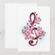 Pink treble clef with delicate, detailed pink Japanese cherry blossoms against white background painted over with light blue paint Blooming pink sakura.
