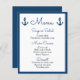 Menu nautique Marine Bleu Mariage Ocean Beach Sail
