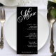 Menu Noir & Blanc Élégant Script Mariage Réception