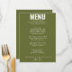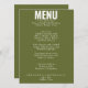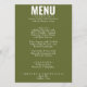 Un menu de dîner mariage moderne et coloré rétro et moderne. Il présente un design modèle chic de boho vintage vert olive arrière - plan et typographie blanche et menu audacieux en blanc. Parfait et assorti à toute la suite.