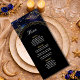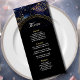 Élevez votre réception sous les étoiles avec ce menu de mariage céleste et astronomique bleu et or élégant. Conçu avec un riche fond de ciel bleu de minuit et accentué de constellations noires et dorées radieuses, ce menu sur le thème des étoiles apporte une touche cosmique raffinée à votre décor de table. Parfait pour les couples attirés par une esthétique romantique et mystérieuse, il mélange magnifiquement le charme céleste avec une sophistication intemporelle. Inspiré par la merveille de l'astrologie et le mystère de l'univers, ce design cosmique améliore votre décoration tout en guidant vos invités à travers votre expérience culinaire soigneusement organisée sous un ciel bleu de minuit scintillant.