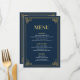 Élevez votre décor de table avec ce menu de dîner sophistiqué. Faisant partie de notre suite Art Déco Navy & Gold exclusive, cette carte de menu présente un fond bleu marine profond intemporel et un cadre géométrique doré luxueux. Sa mise en page épurée et sa typographie élégante sont conçues pour offrir une expérience culinaire haut de gamme à vos invités.✨
