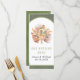 Feuilles tropicaux de palmiers séchés, pampas herbe et protéa fleurs vert terre cuite arche botanique mariage carte menu. Ce joli design mariage est orné d'un cadre en arc sur arrière - plan teinté vert. Dans le cadre il y a un bouquet de feuilles de palmiers séchés, des fleurs de protéa et de l'herbe de pampas.