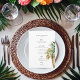 Laissez-vous surprendre par notre menu de mariage moderne Tropical Palm Trees pour célébrer votre fête mariage. Ce design époustouflant présente un ensemble de palmiers d'aquarelle vert et marron, créant une atmosphère tropicale et captivante. Idéal pour les mariages de plage ou de destination, ce menu saisit sans effort l'essence d'un mariage de rêve. Laissez vos invités sentir la chaleur des tropiques et l'amour dans l'air avec ce design captivant. Il fait partie de la suite Mariage moderne Tropical Palm Trees créée par Simply Farmhouse Press.