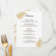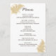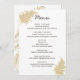 Affichez vos options de dîner mariage pour vos invités à l'aide de cette belle carte de menu mariage design modèle avec des pampas d'art d'herbe original dans les couleurs bronze et de blé doré pour une réception élégante. Facile à personnaliser avec vos choix de menu de réception de mariage, l'en-tête MENU dans une police de caractères manuscrite en chocolat riche peut être omis pour augmenter l'espace pour votre texte principal. Les herbes de pampas très stylisées fleurissent dans les tons marron clair et beige ornent l'avant de ces cartes de menu blanches en haut et en bas avec un look presque vintage. Menus inverse pour révéler une seule floraison d'herbe de pampas agrandie pour un intérêt visuel. Coordonnez votre journée de mariage avec mélanger et assortir des produits en papier avec ma collection de style plage design brune pampa.