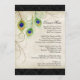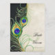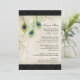 GAMME DE COULEURS : Noir, beige, crème, or, bleu, vert et violet. COLLECTION DE DESIGN : Carte de menu de dîner de réception ou de soirée officielle assortie. Cela fait partie des ensembles d'invitations de mariage comprenant des produits assortis complets. Ces invitations de mariage aux plumes de paon modernes et contemporaines sont tendance, élégantes et chic. L'illustration est issue d'une œuvre d'art originale à l'aquarelle peinte à la main par Audrey Jeanne Roberts. Il y a un fond de dentelle texturée, teintée de thé, antiquée, de plumes de paon stylisées et modernes et une bordure latérale de couleur coordonnée. Au verso figure votre texte d'invitation de mariage personnalisé, un ensemble de plumes de paon avec des fioritures enroulées dessinées à la main en beige et un motif damass
