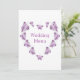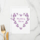 menu mariage papillon design coeur. Customisez ce menu couleur violet avec vos détails mariages. Si vous avez besoin d'aide pour vous customiser, contactez-nous via le lien de cette page. Menu mariage personnalisé avec conception de coeur de papillon violet
