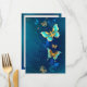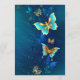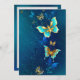 Or volant, papillon bijoux sur arrière - plan textuel bleu. Conception avec papillons.