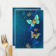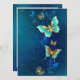Or volant, papillon de bijoux sur arrière - plan textuel bleu. Conception avec des papillons.