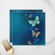 Or volant, papillon bijoux sur arrière - plan textuel bleu. Conception avec papillons.