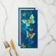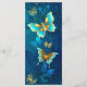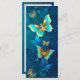 Or volant, papillon bijoux sur arrière - plan textuel bleu. Conception avec papillons.