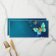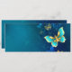 Or volant, papillon bijoux sur arrière - plan textuel bleu. Conception avec papillons.