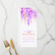 Vin abstrait moderne violet type d'aquarelle fleurie menu mariage ou menu spécial événement. Modifiez ces menus avec votre propre menu et 4 plats pour le dîner. Menu moderne violet, mauve et orange abstrait aquarelle aquarelle. Idéal pour la glycine printanière ou les mariages floraux violets et les mariages oranges violettes modernes ou d'autres événements thématiques. © Design et aquarelle de Sarah Trett. www.sarahtrett.com pour www.mylittleedenweddings.com sur zazzle.