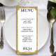 Carte de menu de réception mariage parties scintillant blanche et or avec rectangle d'angle concave. Une typographie élégante pour un regard cher à un prix abordable. Customisez la liste des repas et les détails personnels. Idéal pour un thème mariage moderne minimaliste avec une touche de style.