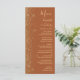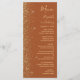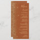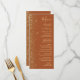 Le bord gauche de cet élégant menu mariage moderne présente un style de parties scintillant en faux or. Le texte personnalisable combine écriture manuscrite dorée, cuivre et polices italiques sur un arrière - plan en terre cuite. L'envers est assorti d'une parties scintillant en terre cuite et en or.
