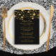 Menu Dîner Correspondant pour dîner officiel, événements d'entreprise et réceptions haut de gamme REMARQUE : Il s'agit d'une invitation à plat, il n'y a pas de parties scintillant ou de feuille métallique utilisée. Les effets sont produits graphiquement. DESIGN COLLECTION : Fête élégante, pétillante, amusante dans les oeuvres? Ce faire-part de mariage confetti pois de taille aléatoire informe vos invités qu'une fête se déroule ! De magnifiques scintillants dorés et luxueux plissent dans des motifs aléatoires aux étoiles scintillantes. Parfait pour un large éventail de styles de cérémonie, de la cravate noire formelle au pays rustique, en plein air sous les lumières scintillantes. Vous pouvez customiser ceci pour n'importe quel type de partie en modifiant les champs de modèle faciles à utiliser. Couleurs : noir et or