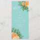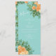Menu Pêche Aqua Turquoise Mariage Roses Floral