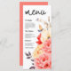 Un somptueux bouquet de magnifiques pivoines et de fleurs de magnolia dans les tons de corail, blush et jaune décoré à droite, avec la typographie de l'en-tête principal Menu dans un ensemble élégant de calligraphie noire. Le reste du texte que vous pouvez facilement personnaliser. Vous pouvez également modifier la couleur et la police du texte modifiable si vous le souhaitez via l'option Cliquer pour Customiser plus ainsi que les couleurs arrière - plans de chaque côté.