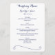 Menu mariage personnalisé blanc et bleu avec texte personnalisable